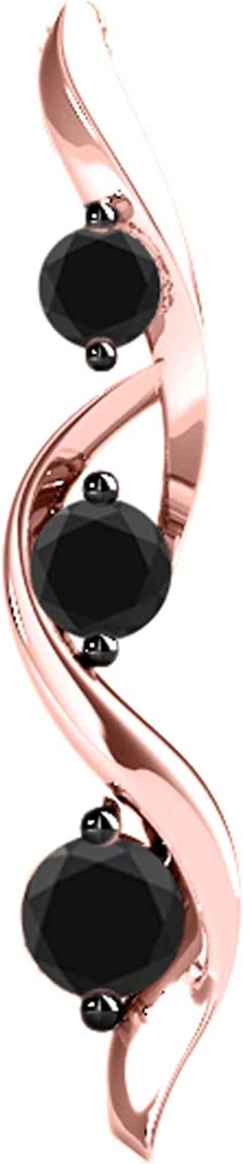 AoneJewelry 0.75 Carat Natural Black Diamond 3-Stones Journey Pendant Necklace For Woman Crafted In 10k Rose White And Yellow Gold With 18" Gold Plated Over 925 Sterling Silver Box Chain