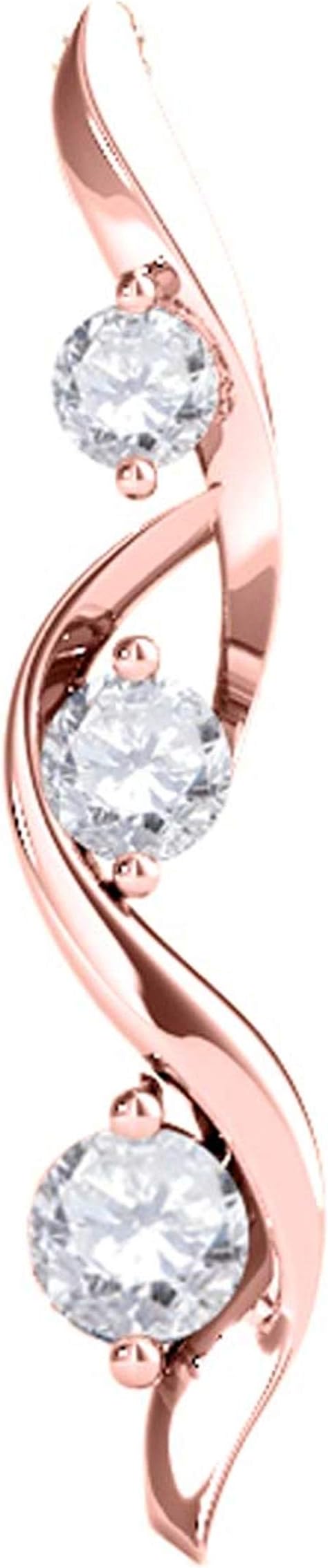 0.25 Carat Natural Round White Diamond Pendant Necklace For Women In 10K Rose, Yellow and White Gold with Gold Plated 925 Sterling Silver 18" Box Chain