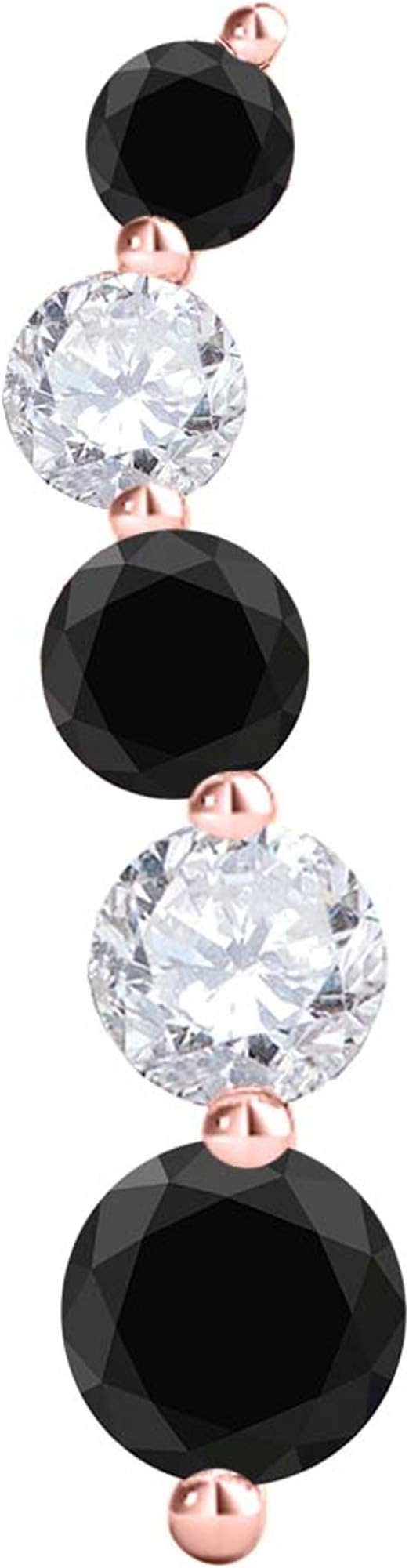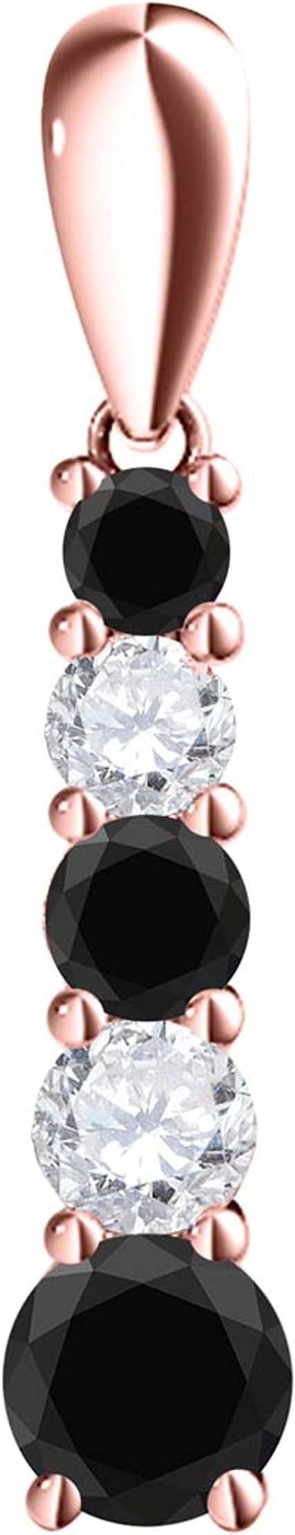 AoneJewelry 10K Rose Gold 1.00 Carat Black & White Diamond/Five Stone Pendant With 18" Box Chain, Best Valentinesday Gift