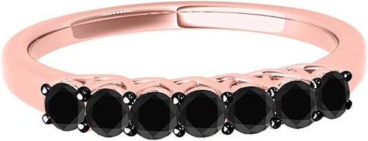 AoneJewelry Black Diamon 0.55 Carat 10K Rose Gold Seven Stone Prong Set Wedding Band, Best Valentinesday Gift