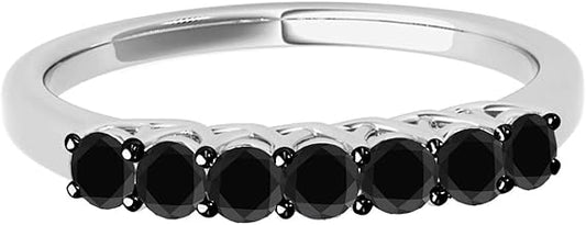 AoneJewelry Black Diamon 0.55 Carat 10K White Gold Seven Stone Prong Set Wedding Band, Best Valentinesday Gift