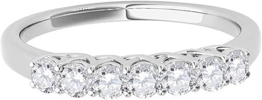 AoneJewelry 0.55 Carat Diamond (H-I/ I1-I2) Seven Stone Wedding Band In 10K White Solid Gold, Best Valentinesday Gift