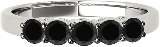 AoneJewelry Black Diamond Five Stone 1.00 Carat Prong Set Wedding Band In 14K White Gold, Best Valentinesday Gift