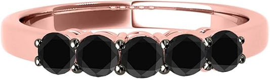 AoneJewelry Black Diamond Five Stone 1.00 Carat Prong Set Wedding Band In 14K Rose Gold, Best Valentinesday Gift