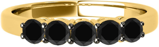 AoneJewelry Black Diamond Five Stone 1.00 Carat Prong Set Wedding Band In 14K Yellow Gold, Best Valentinesday Gift