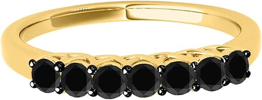 AoneJewelry Black Diamon 0.55 Carat 10K Yellow Gold Seven Stone Prong Set Wedding Band, Best Valentinesday Gift