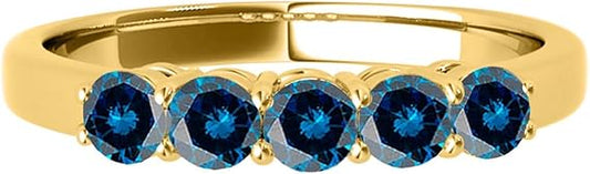 AoneJewelry Blue Diamond 1.00 Carat Five Stone Prong Set Wedding Band In 14K Yellow Gold, Best Valentinesday Gift