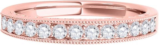AoneJewelry 3/8 Carat Diamond Milgrained Wedding Band In 10K Rose Gold, Best Valentinesday Gift