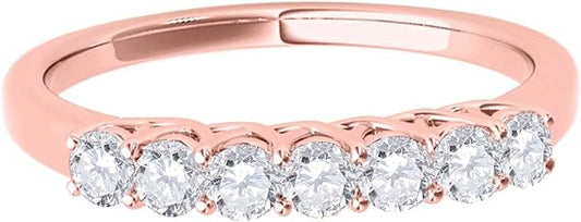 AoneJewelry 0.55 Carat Diamond (H-I/ I1-I2) Seven Stone Wedding Band In 10K Rose Solid Gold, Best Valentinesday Gift