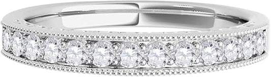 AoneJewelry 3/8 Carat Diamond Milgrained Wedding Band In 10K White Gold, Best Valentinesday Gift