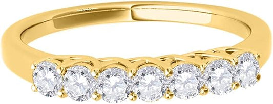 AoneJewelry 0.55 Carat Diamond (H-I/ I1-I2) Seven Stone Wedding Band In 10K Yellow Solid Gold, Best Valentinesday Gift