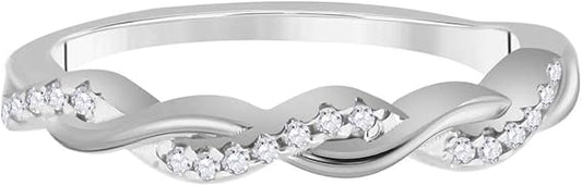 AoneJewelry 0.10 Carat Diamond Prong Set Swirl Wedding Band In 10K White Solid Gold, Best Valentinesday Gift