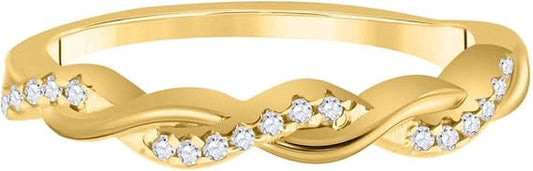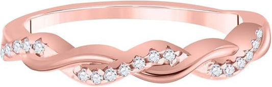 AoneJewelry 0.10 Carat Diamond Prong Set Swirl Wedding Band In 10K Rose Solid Gold, Best Valentinesday Gift