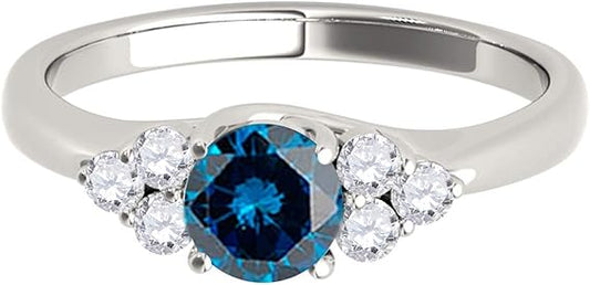 AoneJewelry 0.75 Carat Blue & White Diamond Seven Stone Engagement Ring In 10K White Gold, Best Valentinesday Gift