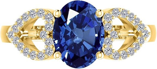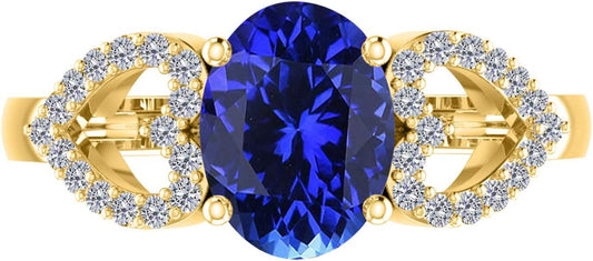 AoneJewelry 1.40 Carat Oval Shape Tanzanite & Diamond Gemstone Ring In 10K Yellow Gold, Best Valentinesday Gift