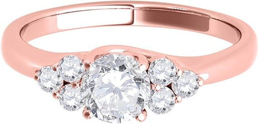 AoneJewelry 1/2 Carat Diamond Seven Stone Engagement Wedding Ring In 10K Rose Gold, Best Valentinesday Gift