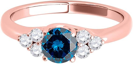 AoneJewelry 0.75 Carat Blue & White Diamond Seven Stone Engagement Ring In 10K Rose Gold, Best Valentinesday Gift