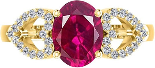 AoneJewelry 1.40 Carat Ruby & Heart Shape Diamond Gemstone Ring In 14K Yellow Gold, Best Valentinesday Gift