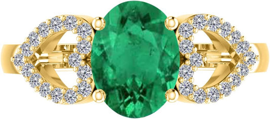 AoneJewelry 1.40 Carat Diamond & Oval Shape Emerald Gemstone Ring In 14K Solid Yellow Gold, Best Valentinesday Gift
