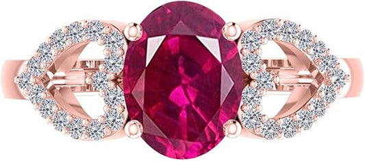 AoneJewelry 1.40 Carat Ruby & Heart Shape Diamond Gemstone Ring In 14K Rose Gold, Best Valentinesday Gift
