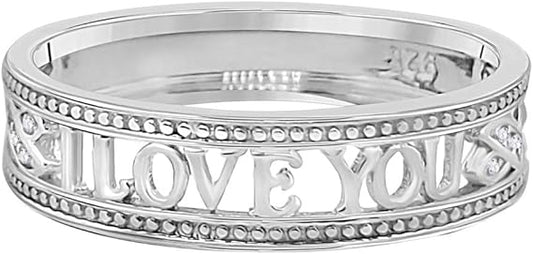 AoneJewelry 0.10 Carat Diamond I Love You Lightweight Wedding Band In 10K Solid White, Rose & Yellow Gold Sold, Best Valentinesday Gift
