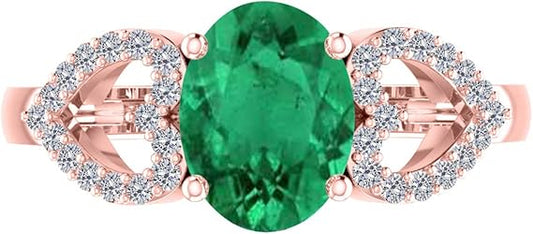 1.40 Carat Diamond & Oval Shape Emerald Gemstone Ring In 14K Solid Rose Gold, Best Valentinesday Gift