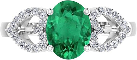 AoneJewelry 1.40 Carat Diamond & Oval Shape Emerald Gemstone Ring In 14K Solid White Gold, Best Valentinesday Gift
