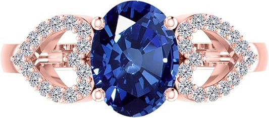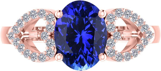 AoneJewelry 1.40 Carat Oval Shape Tanzanite & Diamond Gemstone Ring In 10K Rose Gold, Best Valentinesday Gift