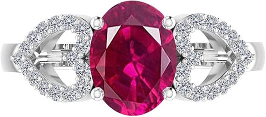 AoneJewelry 1.40 Carat Ruby & Heart Shape Diamond Gemstone Ring In 14K White Gold, Best Valentinesday Gift