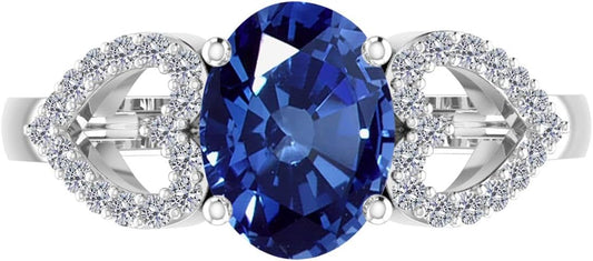 AoneJewelry 1.40 Carat Sapphire Gemstone & Diamond Heart Shape Ring In 14K Solid White Gold, Best Valentinesday Gift