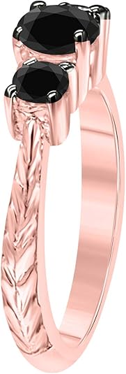 AoneJewelry 1.25 Carat (Color Black, Clarity I2-I3) Round Shape Black Diamond Three Stone Engagement Ring in 10K Solid Rose Gold Sold By Aone Jewelry, Best Valentinesday Gift