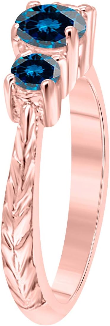 AoneJewelry 1.25 Carat Round Shape Blue Diamond Three Stone Engagement Ring (size 5-9) in 10K Solid Rose, White, Yellow Gold, Best Valentinesday Gift