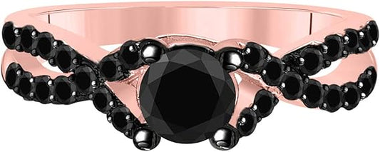 1 Carat (Color Black, Clarity I2-I3) Round Shape Black Diamond Engagement Ring made in 10K Gold (Rose, White, Yellow) Sold By Aone Jewelry, Best Valentinesday Gift