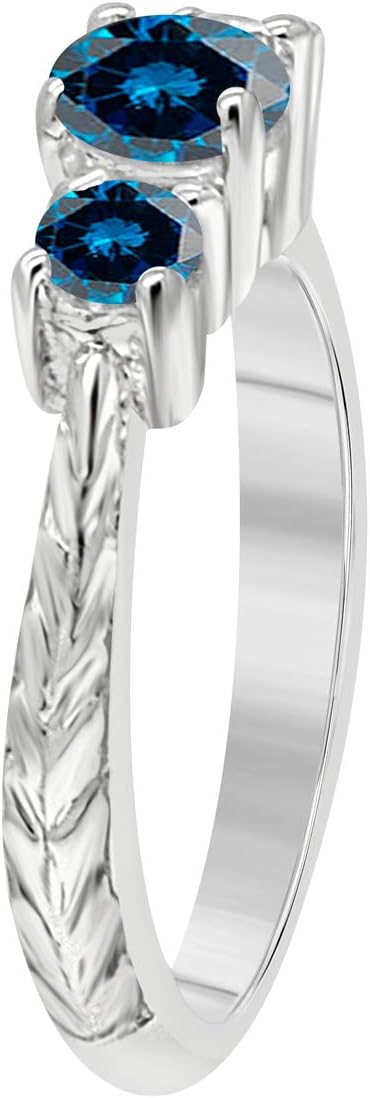 AoneJewelry Aone Jewelry 1.25 Carat (Color Blue, Clarity I2-I3) Round Shape Blue Diamond Three Stone Engagement Ring In 10k Gold (Rose, White, Yellow), Best Valentinesday Gift