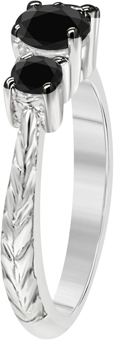 AoneJewelry Aone Jewelry 1.25 Carat Round Shape Black Diamond Three Stone Engagement Ring In 10k Rose, White, Yellow Gold (Color Black, Clarity I2-I3), Best Valentinesday Gift