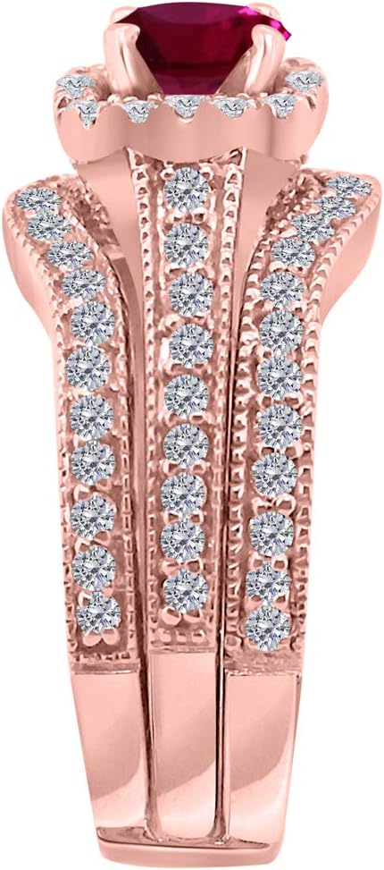 AoneJewelry Engagement Rings for Women Ruby And Diamond Gemstone 1.50 Carat Trio Ring Set In 14K Solid White Rose & Yellow Gold Wedding Jewelry Collection -Valentines Day Gift for Her