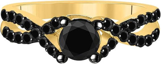 10k Yellow Gold Engagement/Wedding Ring With 1 Cttw (Color Black, Clarity I2-I3) Round Shape Black Diamonds (size 5-9), Best Valentinesday Gift