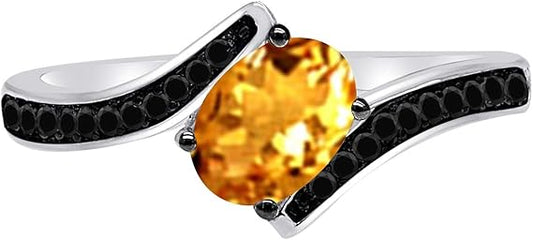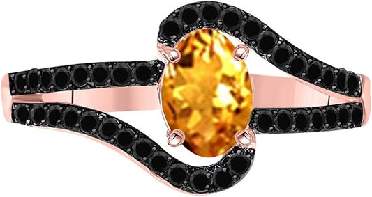 Aonejewelry 1.00 Carat Black Diamond And Oval Shape Citrine Ring In 14K Solid Gold (Rose, White & Yellow), Best Valentinesday Gift