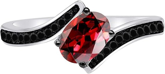 Aonejewelry 1.00 Carat Oval Shape Garnet And Black Diamond Ring In 14K White Rose & Yellow Gold, Best Valentinesday Gift