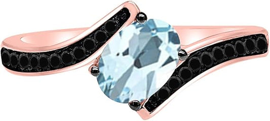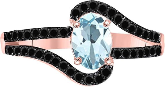 Aonejewelry 1.45 Ct. Natural Aquamarine Black Diamond Ring crafted in 10k Rose, White & Yellow Gold, Best Valentinesday Gift