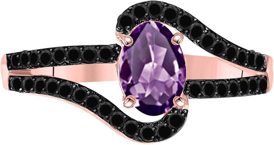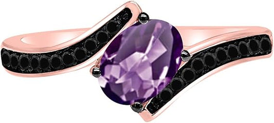 AoneJewelry 1.45 Ct. Amethyst Black Diamond Ring Crafted In 10k Rose, White & Yellow Gold, Best Valentinesday Gift