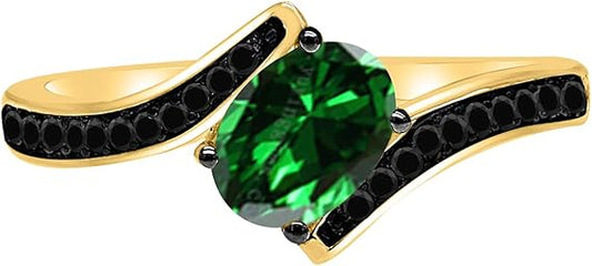 Aonejewelry Black Diamond And Created Emerald Ring In 14K Rose, White & Yellow Gold, Best Valentinesday Gift