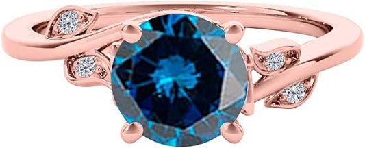 14K White, Yellow & Rose Solid Gold 1.00 Carat Blue Natural/Round/Diamond/Solitaire Style Ring Sold, Best Valentinesday Gift