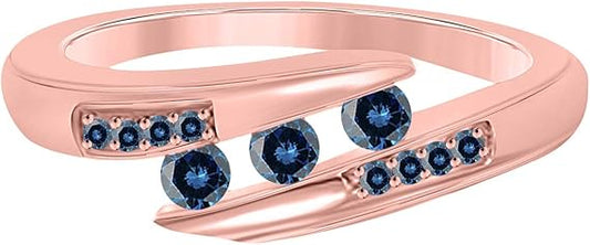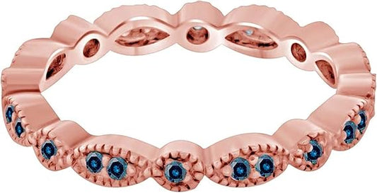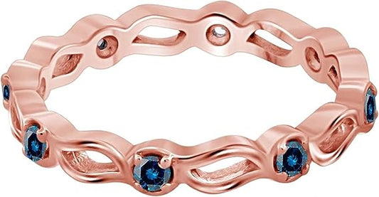 0.25 Carat Blue Diamond Eternity Wedding Band In 10K Rose Gold, Best Valentinesday Gift