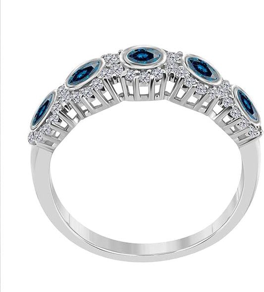 1.00 Carat Blue Diamond Bezel Set Wedding Engagement Band In 14K White, Rose & Yellow Gold, Best Valentinesday Gift