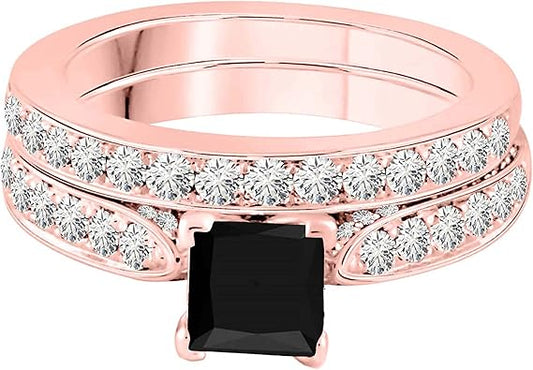 Diamond Engagement Ring For Women 2.1 Carat Round Shape Black Diamond Prong Setting 60 Stone Engagement Aniversary Ring In 14K Solid Rose, White & Yellow Gold By AoneJewelry Collection