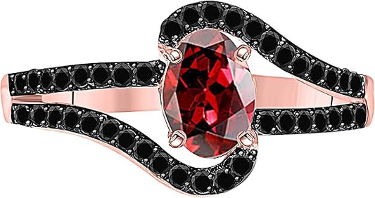 Garnet Gemstone Engagement Rings for Women | 10K Rose, White & Yellow gold 1.45 Carat Red Color Round Cut Prong Setting Genuine Diamond Wedding Jewelry Collection