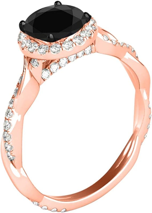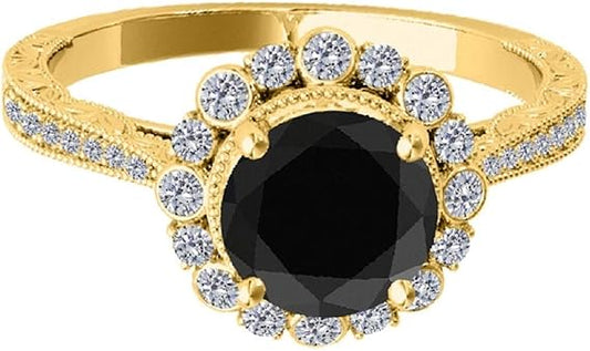 Aonejewelry 1.50 Carat Black Diamond Halo Engagement Ring In 10K Solid Rose, White & Yellow Gold, Best Valentinesday Gift