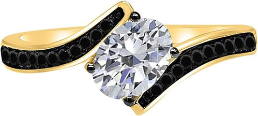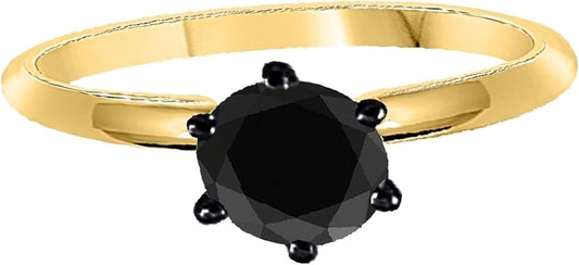 0.50-3.00 Carat 10K Yellow Gold Solitaire Black Diamond Engagement Ring, Best Valentinesday Gift