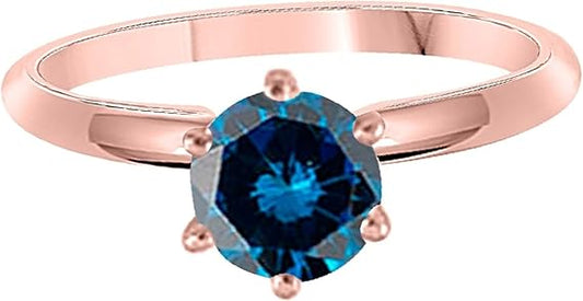 Aonejewelry Blue Diamond Engagement Solitaire 10K Solid Rose, White & Yellow Gold Ring In 1.00 Carat, Best Valentinesday Gift